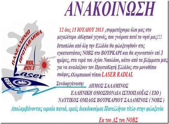 ΝΟΒΣ ΑΝΑΚΟΙΝΩΣΗ 12 εως 15 ΙΟΥΛΙΟΥ 2013